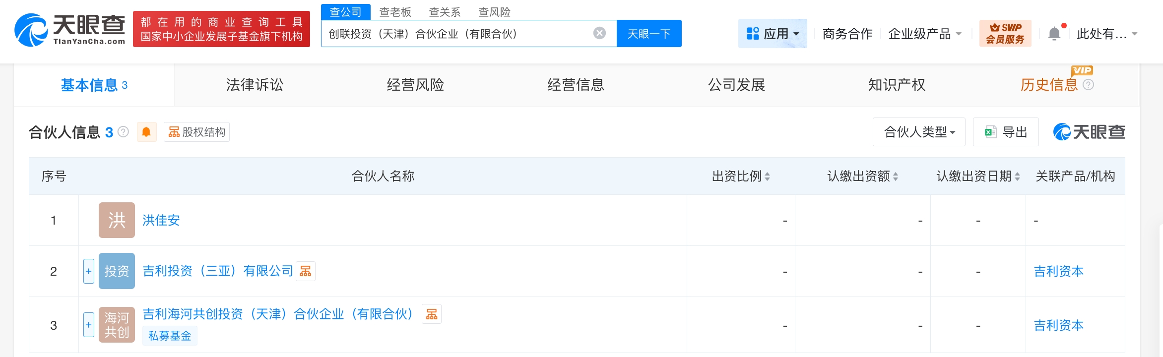 每經(jīng)AI快訊,天眼查App顯示,近日,創(chuàng)聯(lián)投資(天津)合伙企業(yè)(有限合伙)成立,執(zhí)行事務(wù)合伙人為吉利投資(三亞)有限公司,出資額5040萬元人民幣,經(jīng)營范圍含以自有資金從事投資活動(dòng)。合伙人信息顯示,該合伙企業(yè)由洪佳安、吉利投資(三亞)有限公司、吉利海河共創(chuàng)投資(天津)合伙企業(yè)(有限合伙)共同出資。