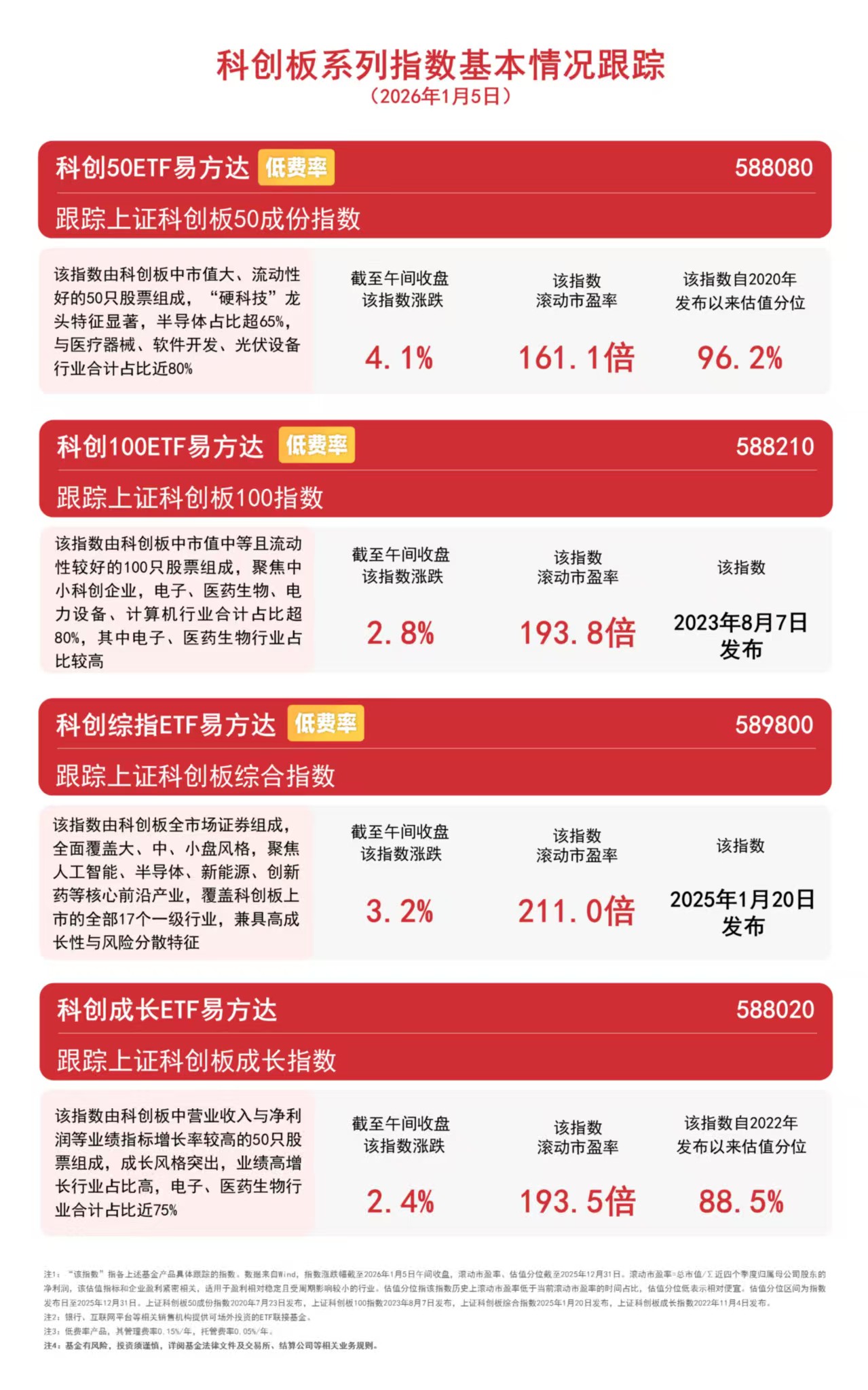 今日早盤,半導(dǎo)體、存儲芯片、醫(yī)療器械等板塊走強,科創(chuàng)板系列指數(shù)集體大漲。截至午間收盤,科創(chuàng)50指數(shù)上漲4.1%,科創(chuàng)綜指上漲3.2%,科創(chuàng)100指數(shù)上漲2.8%,科創(chuàng)成長指數(shù)上漲2.4%,科創(chuàng)50ETF易方達(588080)半日成交額超12億元,較前一交易日大幅放量。