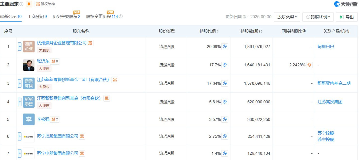 此外,雖然蘇寧電器集團(tuán)有限公司100%股權(quán)(包括其持有的蘇寧易購(gòu)1.40%的股份)、蘇寧控股集團(tuán)有限公司100%股權(quán)(包括其持有的蘇寧易購(gòu)2.75%的股份)將被注入重整服務(wù)信托,蘇寧易購(gòu)在該公告中表示,鑒于兩家公司均非公司的控股股東或?qū)嶋H控制人,前述股東重整不會(huì)導(dǎo)致現(xiàn)有公司治理結(jié)構(gòu)發(fā)生變化。