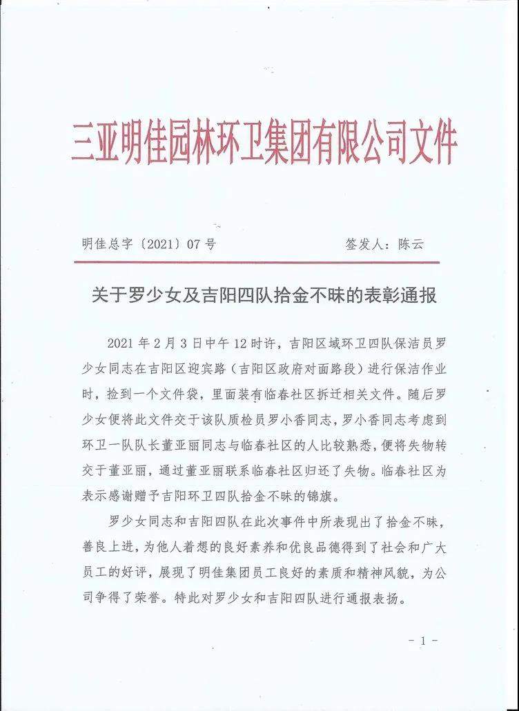 會上,明佳集團(tuán)黨支部書記、董事長陳明宣讀了《關(guān)于羅少女及吉陽四隊拾金不昧的表彰通報》