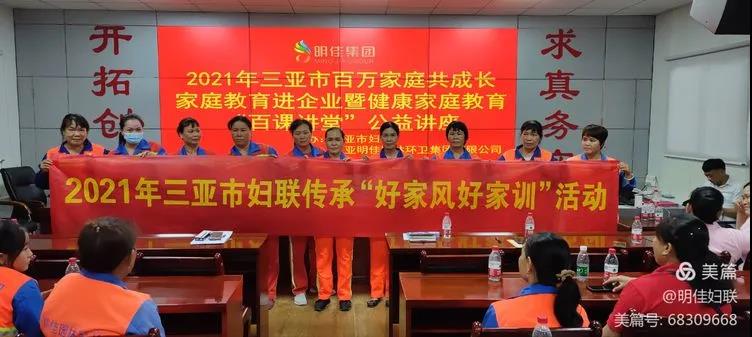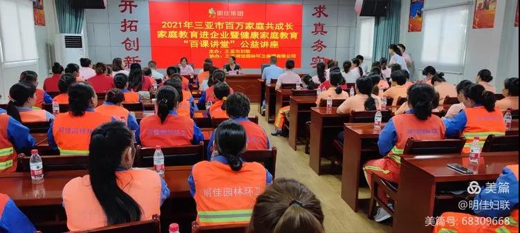為引導廣大婦女帶動家庭成員大力培育新時代家庭觀,推動社會主義核心價值觀落細落小落實到家庭,切實落實家庭教育立德樹人的根本任務,根據(jù)省婦聯(lián)“家家幸福安康工程”部署,結合“我為婦女群眾辦實事”實踐活動。2021年7月20日下午15時30分,由市婦聯(lián)主辦、明佳婦聯(lián)協(xié)辦的2021年三亞市百萬家庭共成長家庭教育進企業(yè)暨健康家庭教育“百課講堂”公益培訓課在明佳三樓會議室成功舉行,培訓內容為家庭教育知識和女性健康知識,明佳集團80余名職工參加了此次培訓。