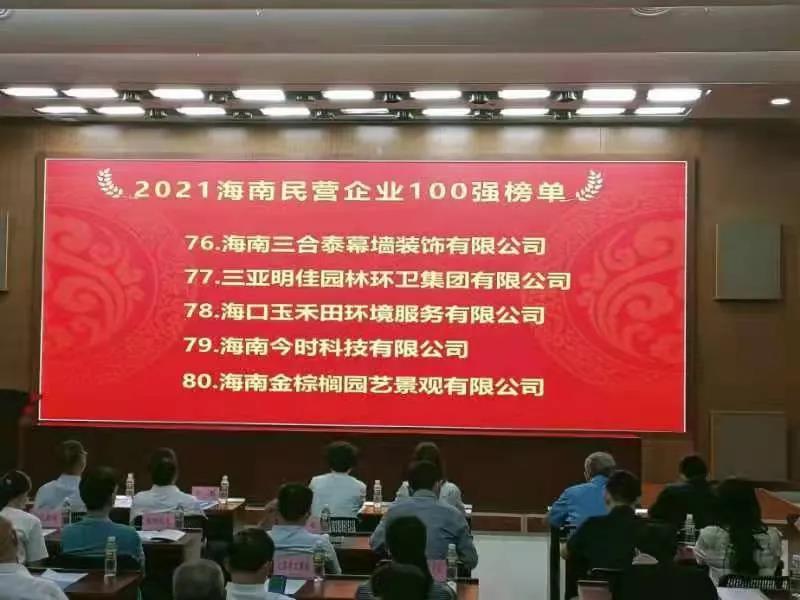 11月4日,海南省工商業(yè)聯(lián)合會(huì)在??诎l(fā)布“2021海南民營(yíng)企業(yè)100強(qiáng)”榜單。三亞明佳園林環(huán)衛(wèi)集團(tuán)有限公司2019至2021年連續(xù)三年入選海南民營(yíng)企業(yè)100強(qiáng)。