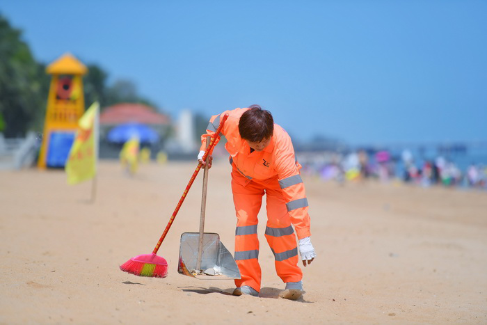 不管風(fēng)吹日曬、酷暑嚴(yán)寒,他們總是起早貪黑、兢兢業(yè)業(yè),在海灘、在街道、在公廁、在田野、在橋底、在垃圾轉(zhuǎn)運(yùn)站隨處可見他們的身影,城市的干凈整潔離不開他們勤勞的雙手,他們才是真正的城市美容師,這就是環(huán)衛(wèi)工人的工作寫照。